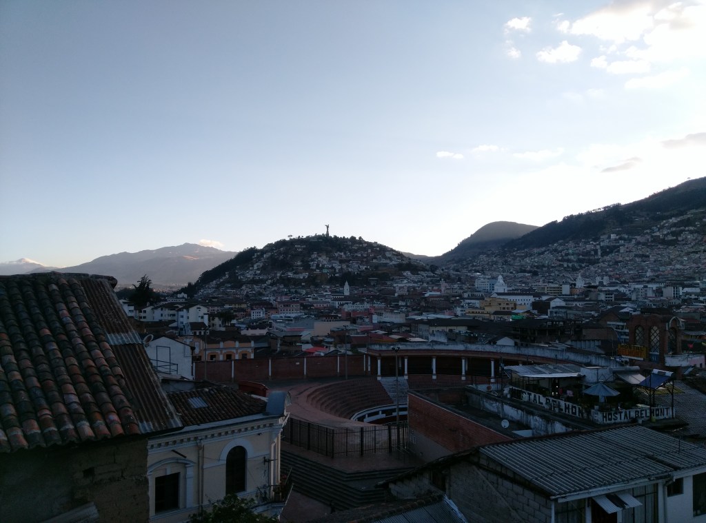 Am Sonntagmittag sind wir nach endlosen Flugzeugstunden am Flughafen Quito gelandet und wurden direkt mit einem Kleinbus abgeholt und in unser Hostel gebracht, welches eine Dachterrasse mit mega Ausblick hat. Danach haben wir auch direkt die Umgebung erkundschaftet und uns versucht so lange wie möglich wach zu halten, um einen Jetlag zu vermeiden, was bis späte 9 Uhr abends gelang.