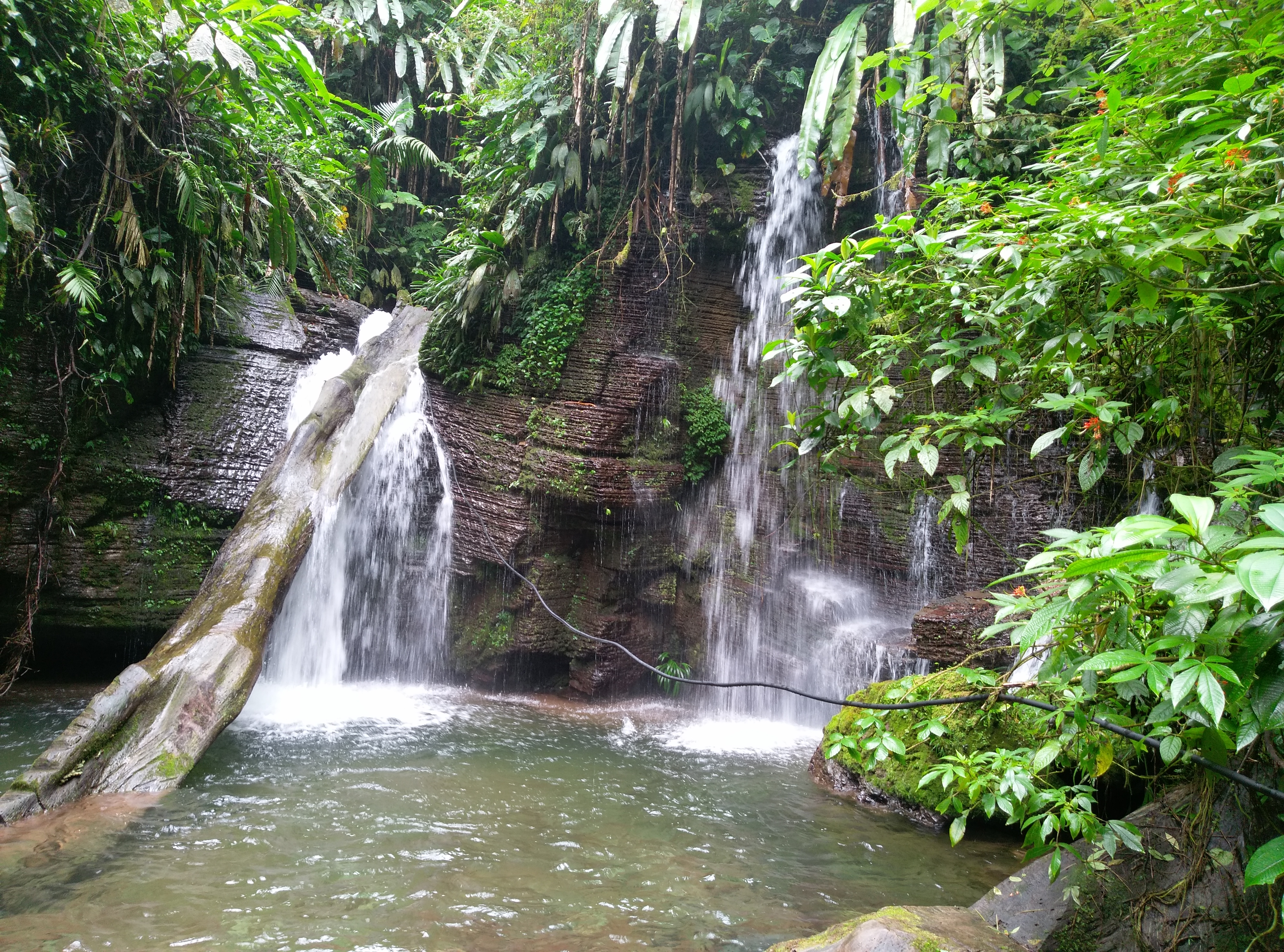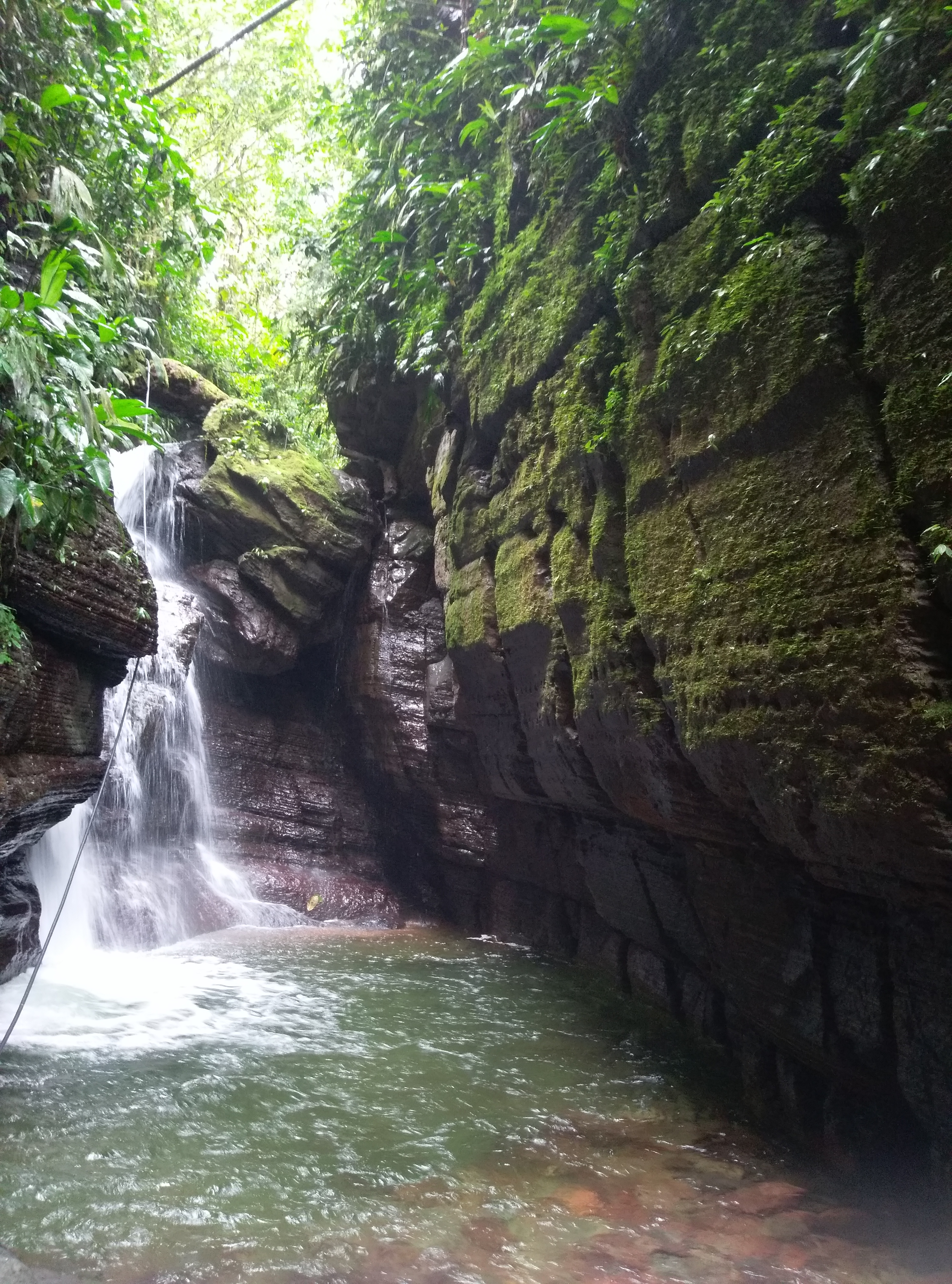 Auch haben wir mittlerweile den Ausflug zu den nahegelegenen Wasserfällen gemacht. Dafür bekamen wir Muster mit einer Pflanzenfarbe ins Gesicht gemalt, jeder etwas anderes und liefen den kleinen Fluss hinauf, sowie auch durch dichten Dschungel. Dort kam man sich direkt vor, als sei man in einer anderen Welt, denn alles sah sehr idyllisch und vom Menschen unberührt aus. Beim ersten großen Wasserfall ließen wir unsere Dinge, die nicht nass werden sollten und kletterten in Badesachen und Gummistiefeln den ersten Wasserfall hinauf. Danach ging es durch knietiefes Wasser zu einem zweiten Wasserfall mit tiefem Becken, in dem dann gebadet werden konnte. Dieser Ausflug hat mir sehr gut gefallen, denn der Weg und natürlich auch die Wasserfälle waren wunderschön.